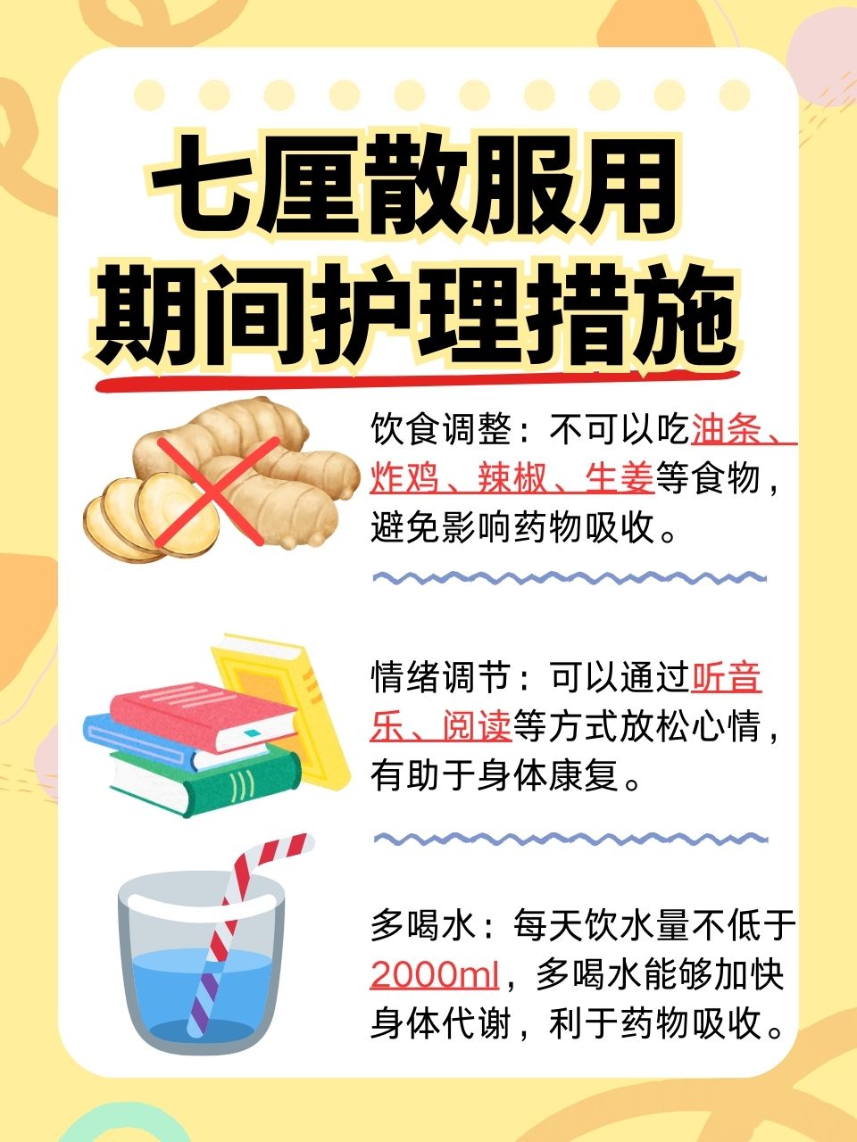📣病気の治療のためにこの薬を服用している間は、薬の吸収を促進するための看護措置が必要です。具体的な内容は図のとおりです。