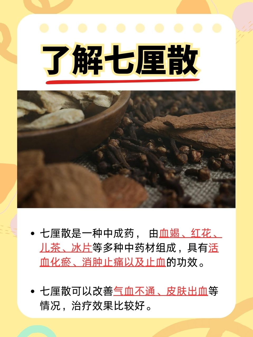 🔺止血: Qili Powder には止血効果もあります。軽度の外傷や切り傷などの場合、Qili San は出血を素早く止め、傷の治癒を促進します。