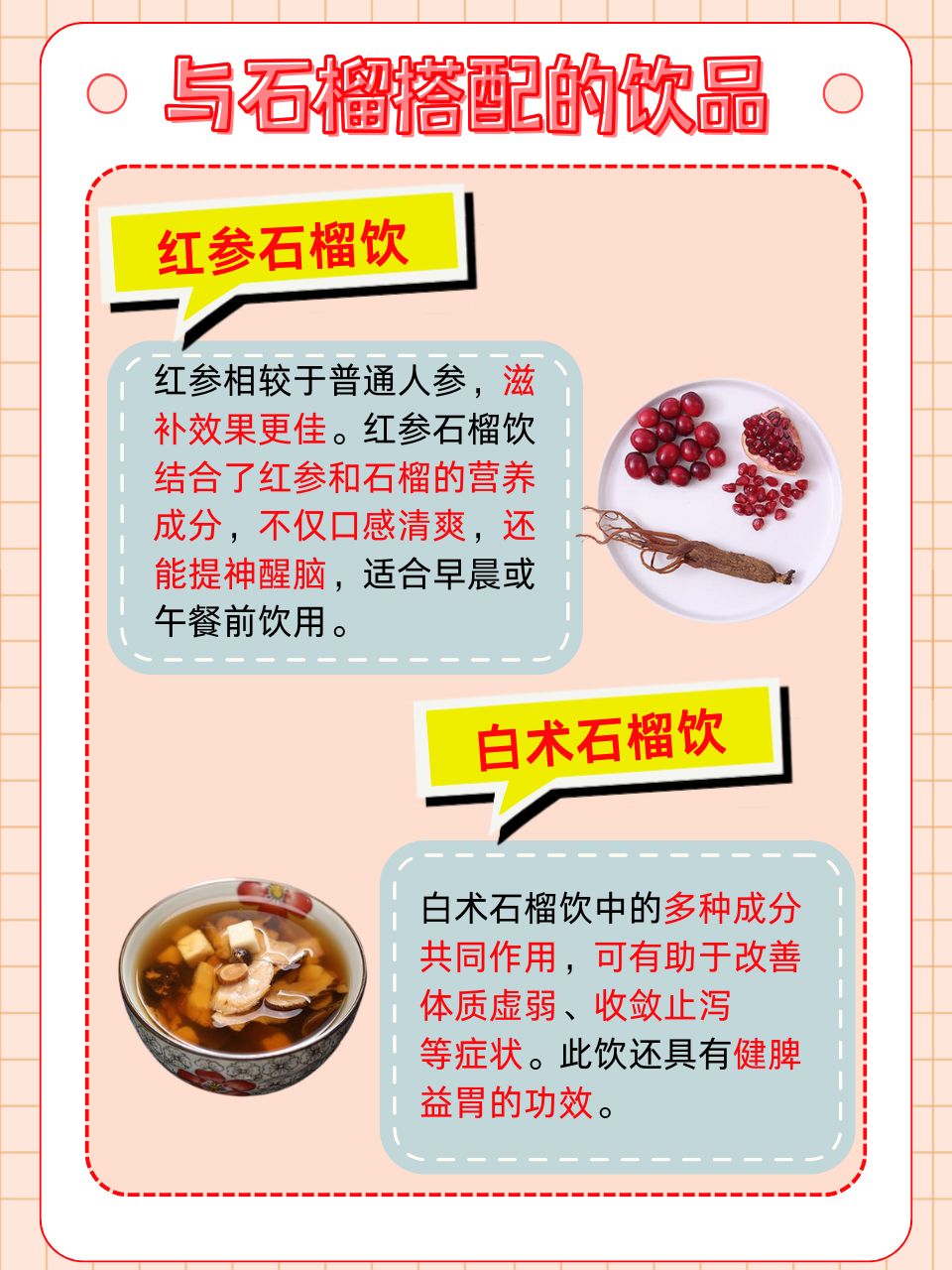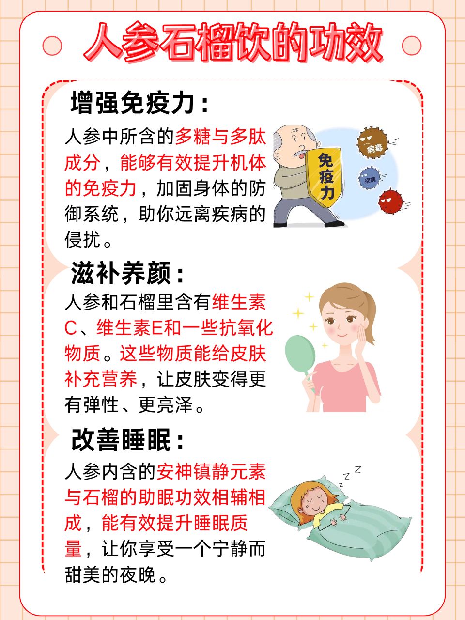 🔺高麗人参とザクロドリンクの効果は次のとおりです。
