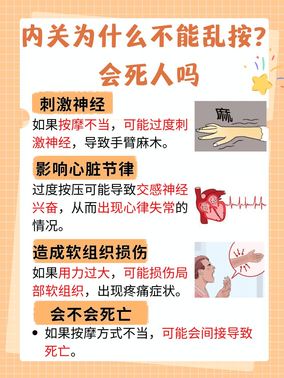 👉マッサージ方法が不適切な場合、間接的に死に至る可能性があります。たとえば、重度の心疾患(重度の心筋梗塞など)を患っている場合、内関ツボをむやみに押すと心拍リズムに影響を与え、心臓への負担が増大し、心停止などの致命的な状況を引き起こす可能性があります。