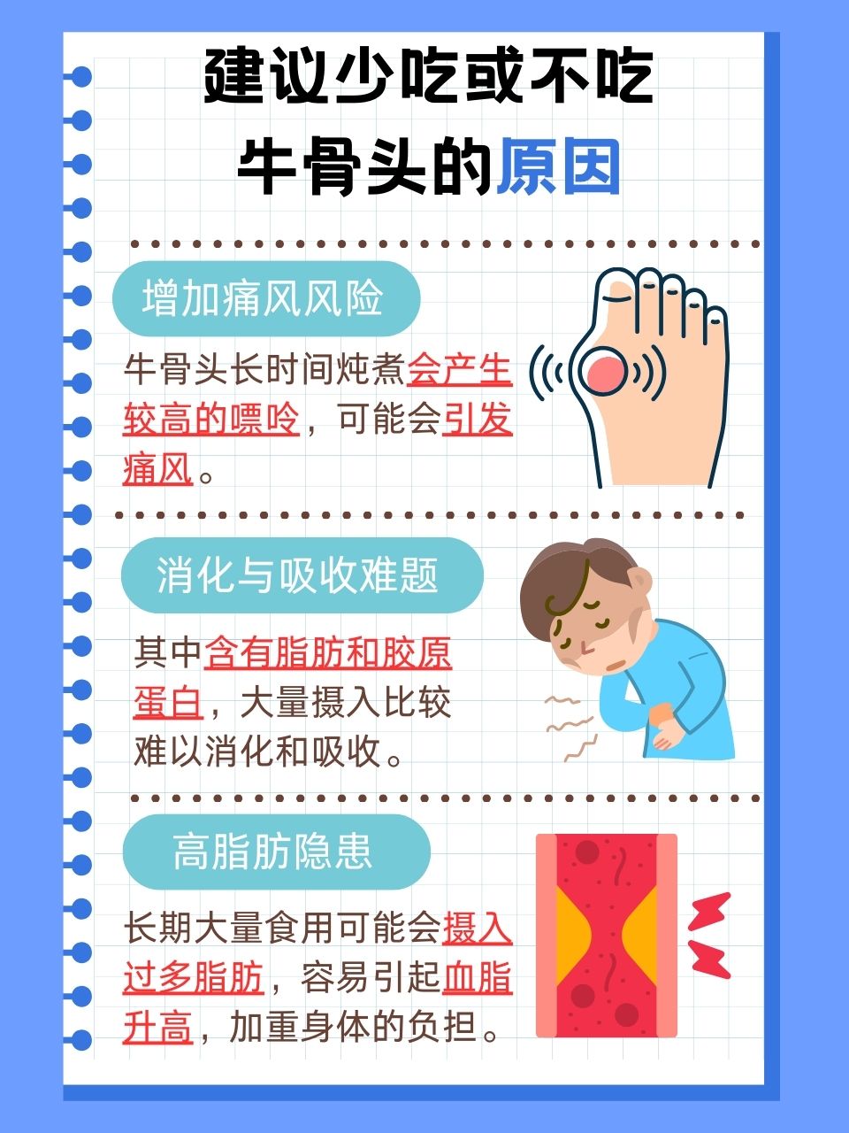💎高脂肪の隠れた危険性: 牛の骨にはかなりの割合で脂肪が含まれており、過剰に摂取すると余分な脂肪が吸収され、血中脂質の増加につながります。 肥満の人にとって、これは身体への負担をさらに増加させ、心血管疾患のリスクを高めます。