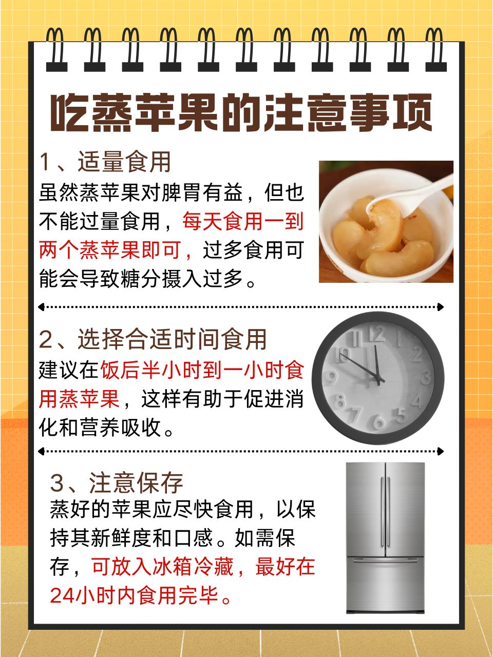 もちろん、蒸しリンゴの美味しさを楽しむ際には、その健康効果を最大限に活かすためにいくつかの点に注意する必要があります。 🚫具体的な内容は写真に載せていますので、ぜひご覧ください!