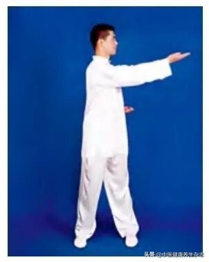 秋冬の季節、天気が乾燥し、多くの人は咳や喘息などの肺の問題を起こしやすいです。「呬」の字訣は肺臓に対応し、肺は人体の「華蓋」であり、気を主り呼吸を司ります。「呬」の字訣を練習する際、均等に声を出しながら体を前に傾ける動作を行うことで、肺臓の機能を調節し、呼吸をスムーズに促進することができます(身体動作は図4を参照)。